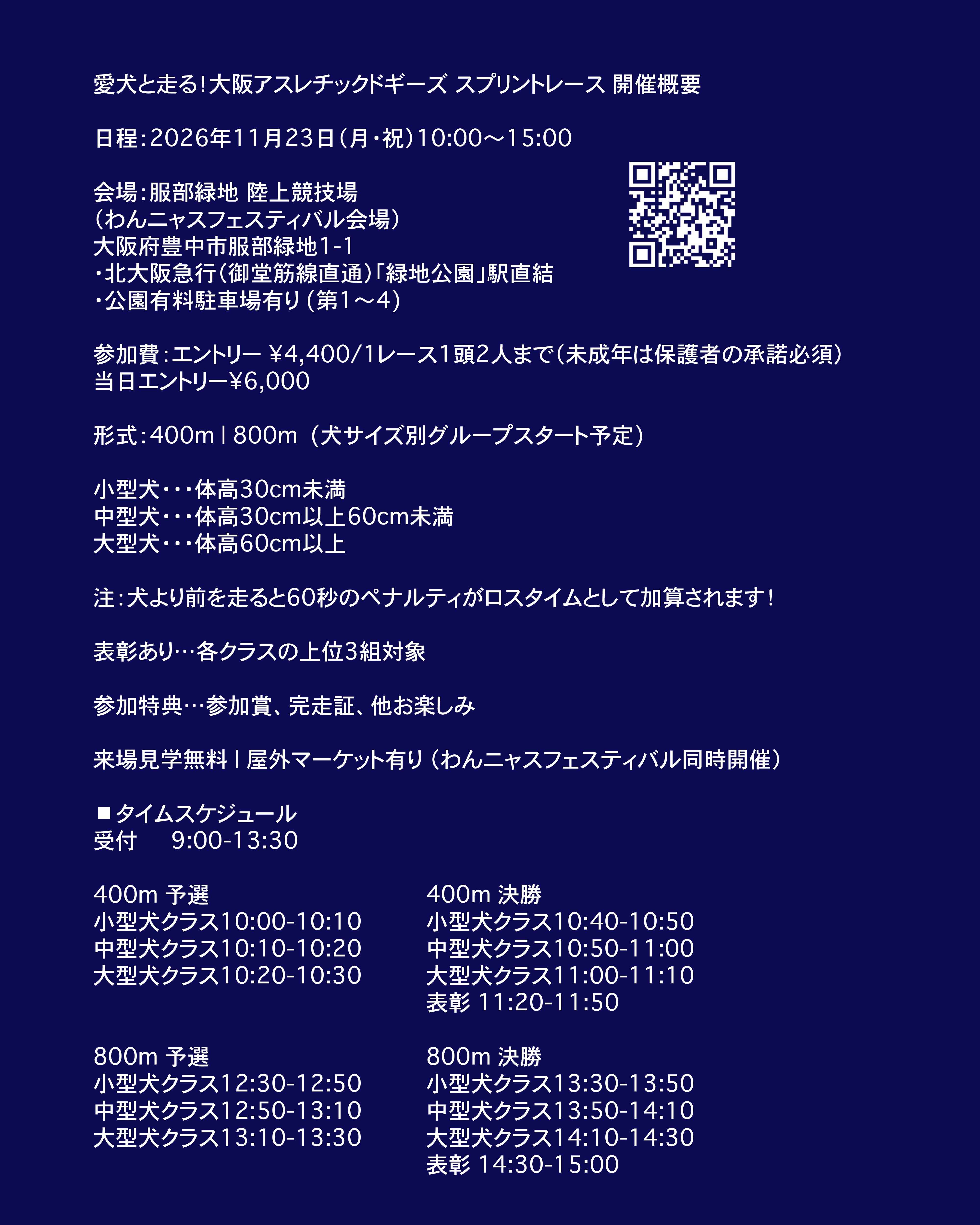 形式:400m | 800m (犬サイズ別グループスタート予定)